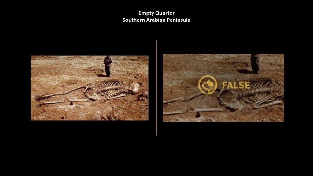 Giant skeletons have also been uncovered in the desert sands of southern Arabia in the process of looking for gas and oil, but like everywhere else these days, discoveries like this have been labelled as hoaxes.