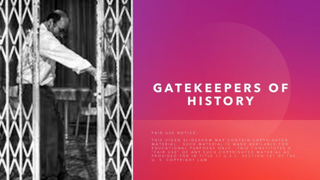 I decided this would be a good time to pull together research I have done on the past on "Gatekeepers of History," particularly with regards to institutions in our world that have played a huge role in controlling the flow of information, not only by shaping the narrative, but also in hiding, suppressing or destroying evidence for who and what was here previously, and what happened to everything.