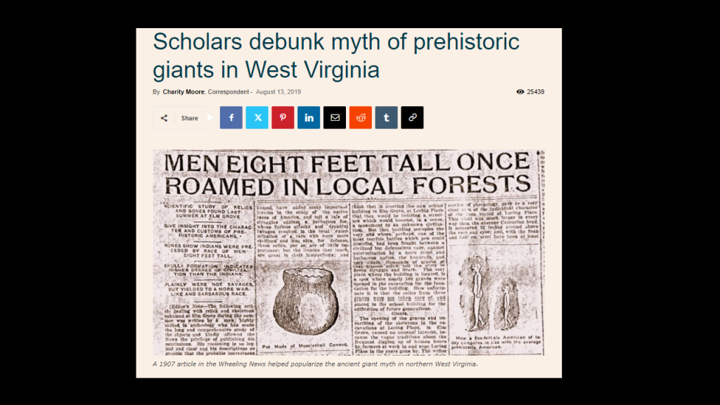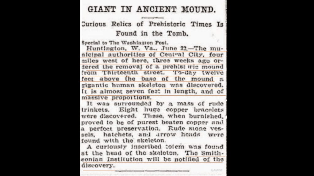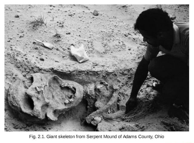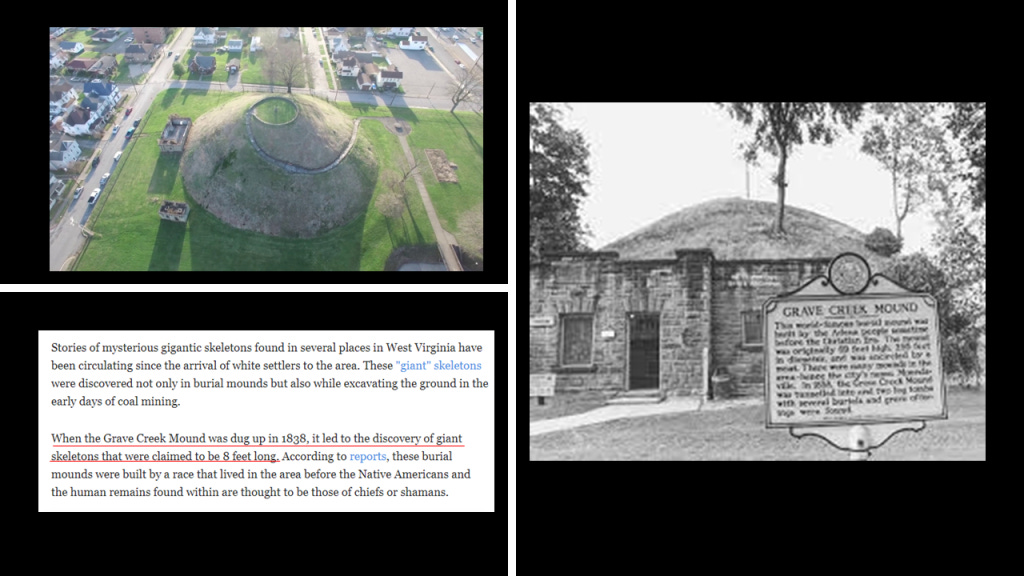 So this acknowledges the presence of giants here who were Mound Builders, but shrouds what happened to them in mystery, just like the lost Atlantis, saying we don’t know who they were, or really anything about them, except that they were a superior people.