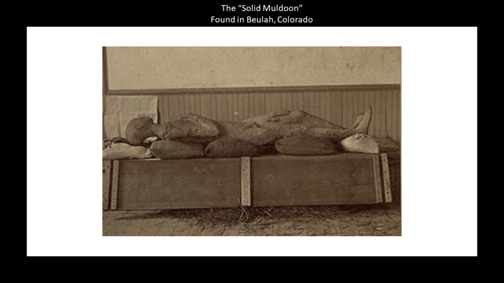 The “Solid Muldoon” was another petrified giant human body that was unearthed in Beulah, Colorado, and later called a hoax perpetrated by the same guy, George Hull.