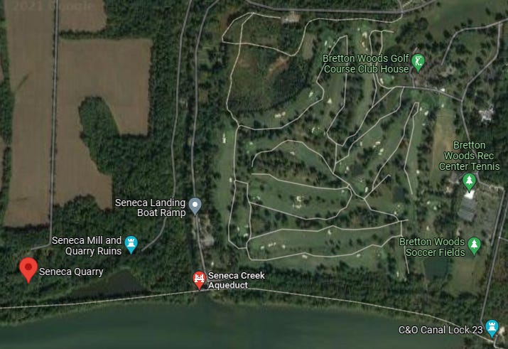 Nowadays, the location designated as the former quarry is overgrown with sycamore trees, poplars, and dense brush, and is impenetrable most of the year.