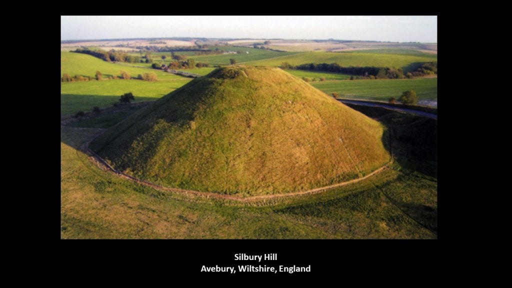 Silbury Hill, located near the Avebury megalithic complex in Wiltshire in England, is similar in appearance to the Miamisburg Mound, and is the largest mound of its kind in Europe