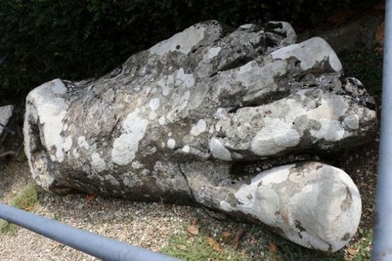 They are of a 72-foot, or 22-meter, statue that depicts a giant embedded in the Earth, struggling to free himself.