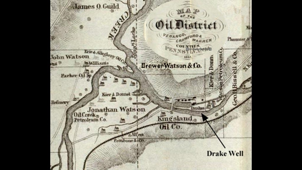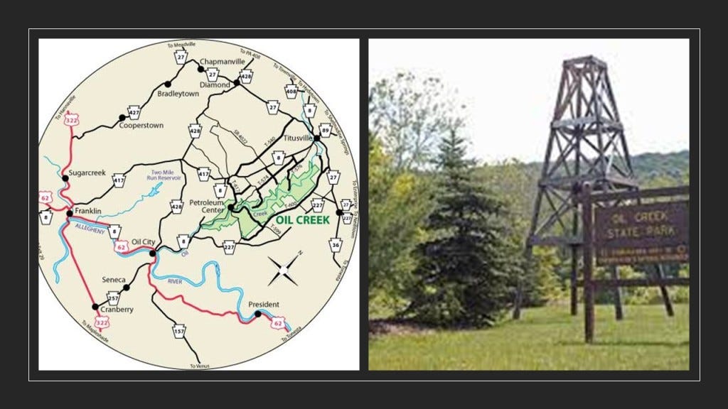 Titusville is noteworthy because it was where the petroleum industry in the United States began in earnest in 1859 when Edwin Drake found oil on a piece of leased-land near Titusville, in what is now called Oil Creek State Park.
