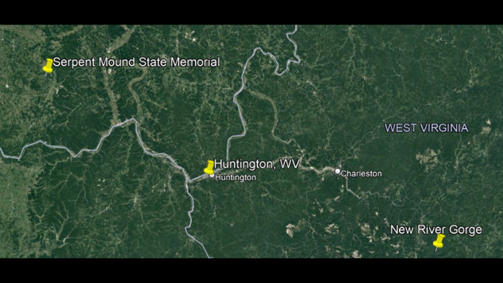 The Great Serpent Mound is only a distance of 63-miles, or 102-kilometers, northwest of Huntington.