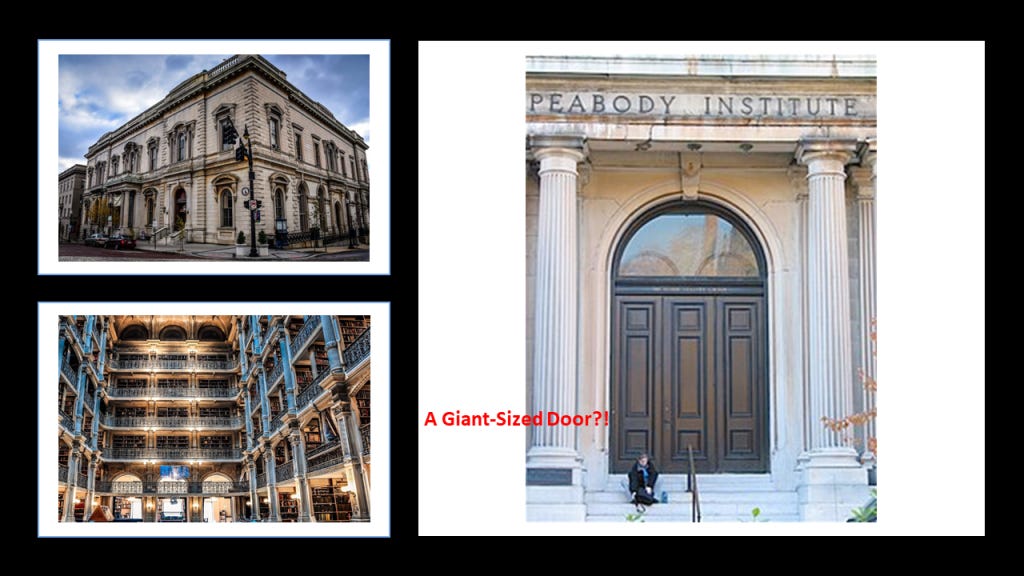 That entrance at the east wing of the George Peabody Library sure looks proportionally like its made for much bigger people than we are today!