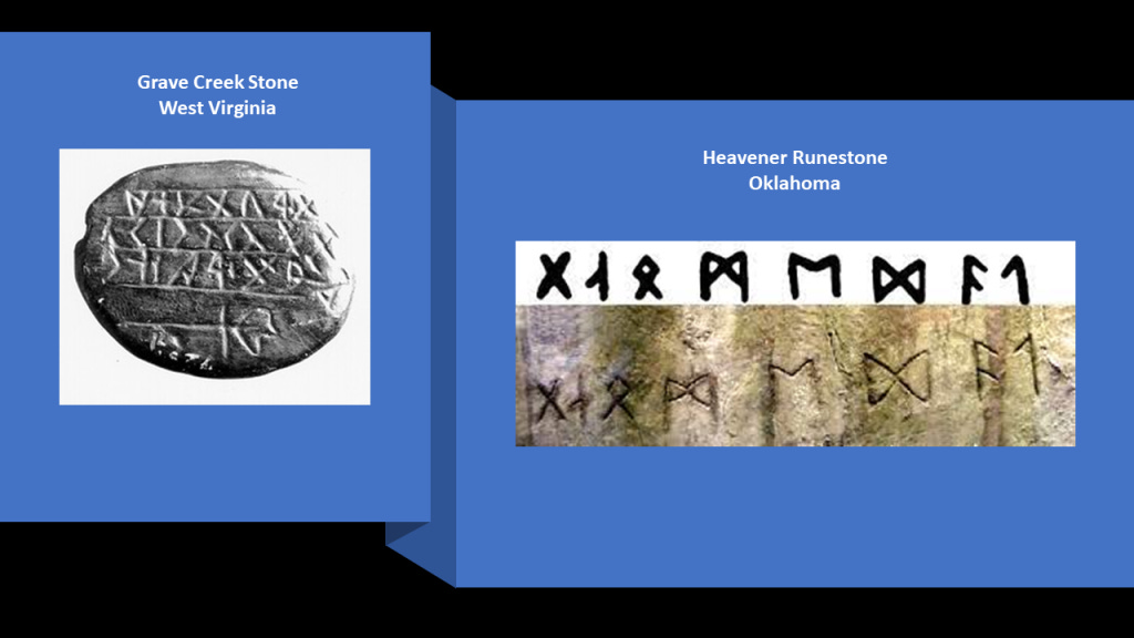 The characters of the Grave Creek Stone bring to mind those on the Heavener Runestone in east-central Oklahoma, which have been mostly attributed to being the Norse Runes of Vikings that found their way there long ago.