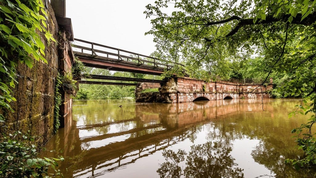 The Seneca Creek Aqueduct is near the location of the quarry and mill, and was said to have been built between 1829 and 1832 out of the Seneca Red Sandstone of the quarry--almost 40-years before the Stone Cutting Mill was said to have opened.