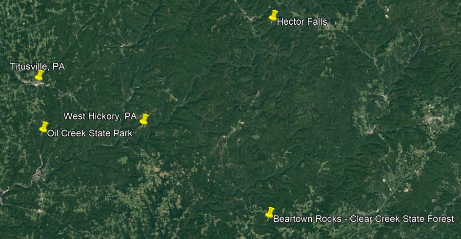 West Hickory just happens to be located geographically only 14-miles, or 23-kilometers southeast of Titusville.