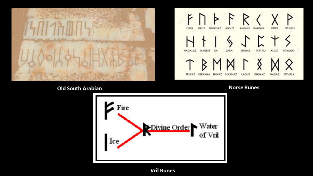What if these runes were actually the runes of Vril, or “Life Force,” pictured on the bottom middle, that was connected to the Ancient Humans and their mastery of how to harness natural energy to create amazing things.